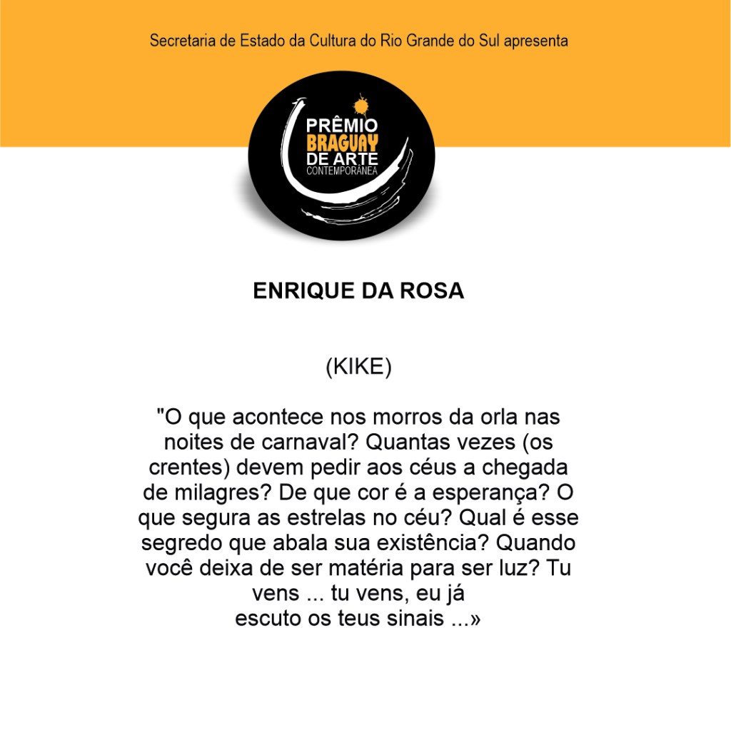 0 Prêmio BRAGUAY de Arte Contemporânea, é realizado a partir de um edital público – uma chamada aberta onde diversos produtores culturais inscrevem suas propostas. Este projeto de premiação foi selecionado, e faz parte do primeiro edital da história dirigido exclusivamente às Artes Visuais do Estado do Rio Grande do Sul, promovido pelo Pró Cultura RS, financiado pelo Fundo de Apoio à Cultura – FAC Visual da Secretaria de Cultura do Estado RS.
