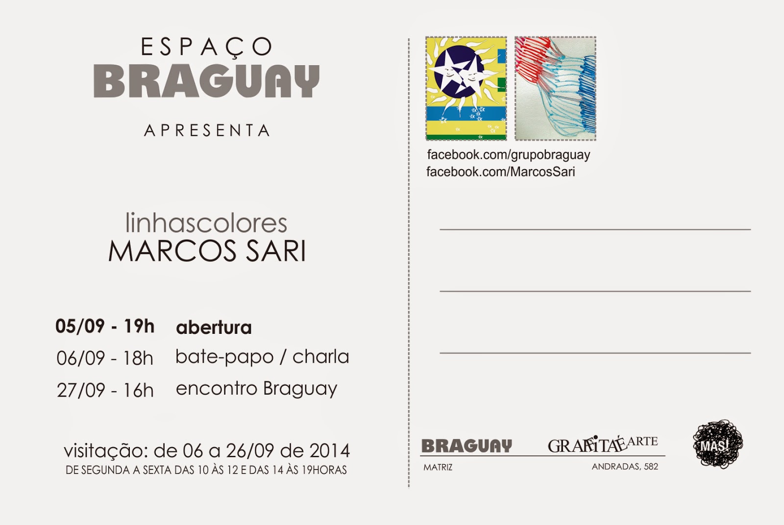 Além disso, Marcos Sari fará uma conversa aberta ao público no dia 6/09 e também participará de um encontro Braguay no dia 27/09.